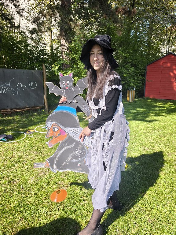 Děti přišly v krásných čarodějnických kostýmech a společně jsme zahájili program čarodějnickým přivítáním a krátkým povídáním o tradici pálení čarodějnic. Následně děti plnily připravené zábavné úkoly rozmístěné po zahradě.