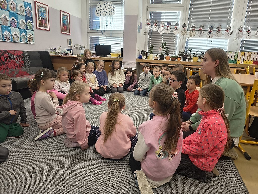 Ze Základní školy 17. listopadu přišlo i letos pozvání na den strávený s jejími školáky. Naše předškolní děti tak dostaly možnost prožít ve škole jedno dopoledne, během kterého si vyzkoušely některé aktivity a cvičení, které ve škole běžně probíhají. Starší děti jim pomáhaly a vše vysvětlovaly. Každoročně se tato návštěva v základní škole setkává s velkým úspěchem jak u našich předškolních dětí, tak školáků, kteří potkají staré kamarády nebo jsou rádi, že mohou svoje zkušenosti někomu předat.