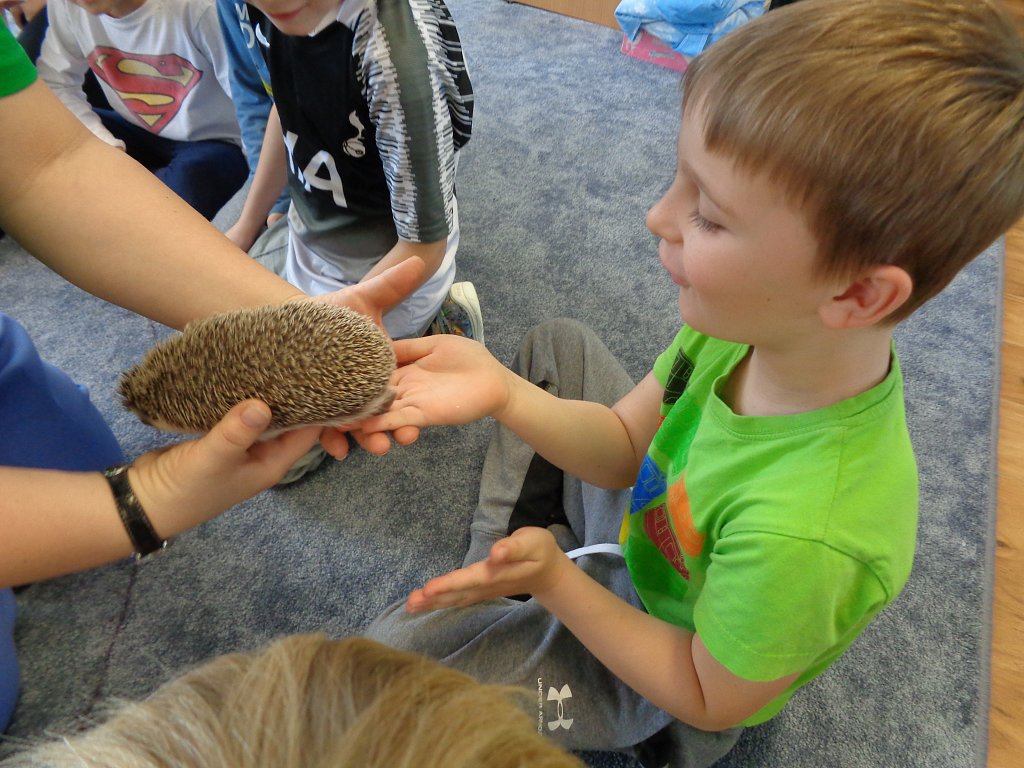 Program plný obrázků, lebek, kůží a modelů skutečných zvířátek vtáhnul děti do světa ježečků. Velkým překvapením na závěr programu bylo, když lektorka z boxu vytáhla živého ježečka Jůlinku. Už teď se těšíme na další společné setkání.