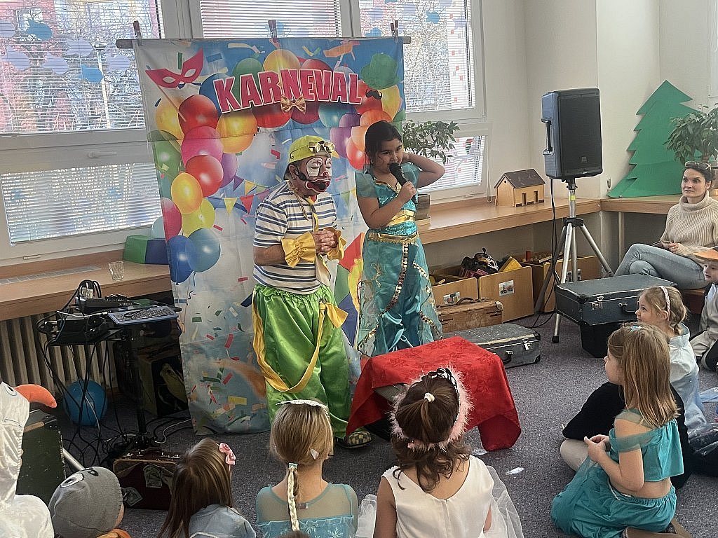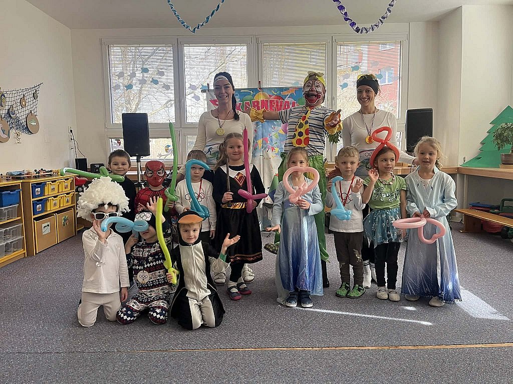 Letos jsme se po delší odmlce vrátili ke karnevalovému veselí s dětmi oblíbeným Pepinem Prckem. Ten k nám do školky zavítal spolu se svou asistentkou a připravil si pro děti bohatý program plný tance, písniček i soutěží. Na závěr každému dítěti vyrobil zvířátko z balonku a udělil dětem hodnocení za nejnápaditější karnevalovou masku. Děti si karneval moc užily a my se budeme těšit zase příští rok.