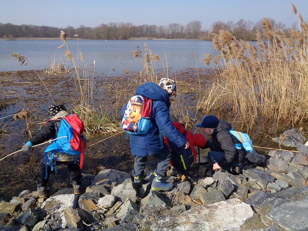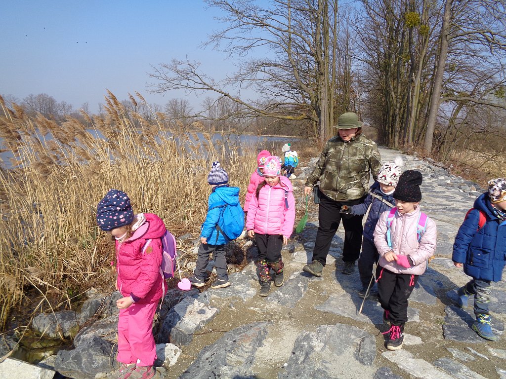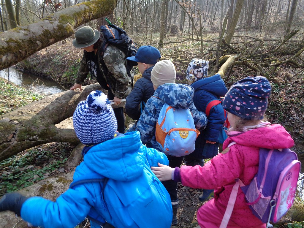 Opravdu už jaro přiletělo? Chtěli jsme se o tom přesvědčit sami a tak jsme vyrazili s lektorkou Markétou na terénní vycházku kolem rybníku Kotvice. Tam jsme se přímo v přírodě dozvěděli spoustu zajímavosti o přírodě, jaru i ptácích. A těch překážek co tam bylo a všechny se nám je podařilo zdolat. Moc jsme si to tam užili.