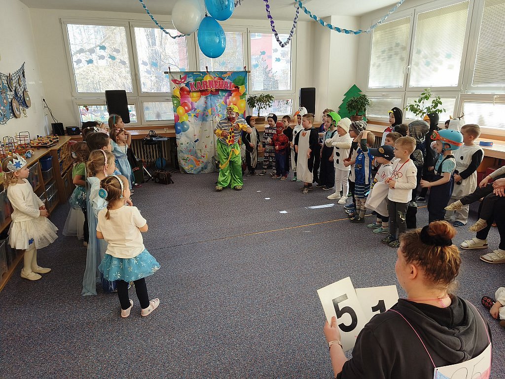 Letos jsme se po delší odmlce vrátili ke karnevalovému veselí s dětmi oblíbeným Pepinem Prckem. Ten k nám do školky zavítal spolu se svou asistentkou a připravil si pro děti bohatý program plný tance, písniček i soutěží. Na závěr každému dítěti vyrobil zvířátko z balonku a udělil dětem hodnocení za nejnápaditější karnevalovou masku. Děti si karneval moc užily a my se budeme těšit zase příští rok.
