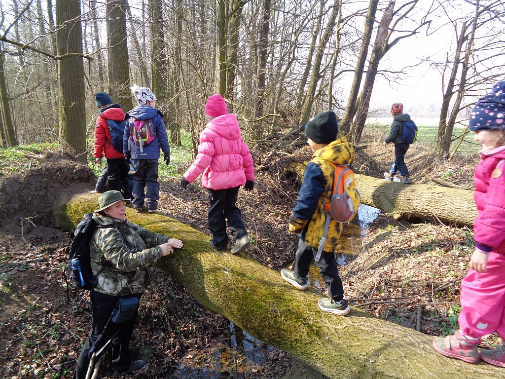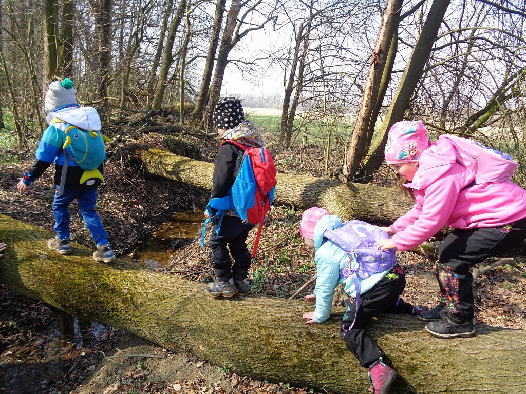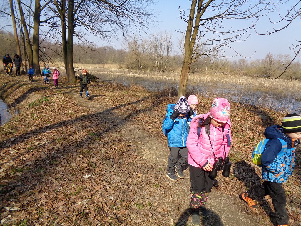 Opravdu už jaro přiletělo? Chtěli jsme se o tom přesvědčit sami a tak jsme vyrazili s lektorkou Markétou na terénní vycházku kolem rybníku Kotvice. Tam jsme se přímo v přírodě dozvěděli spoustu zajímavosti o přírodě, jaru i ptácích. A těch překážek co tam bylo a všechny se nám je podařilo zdolat. Moc jsme si to tam užili.